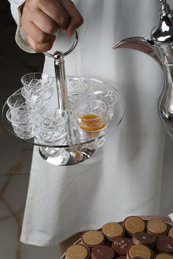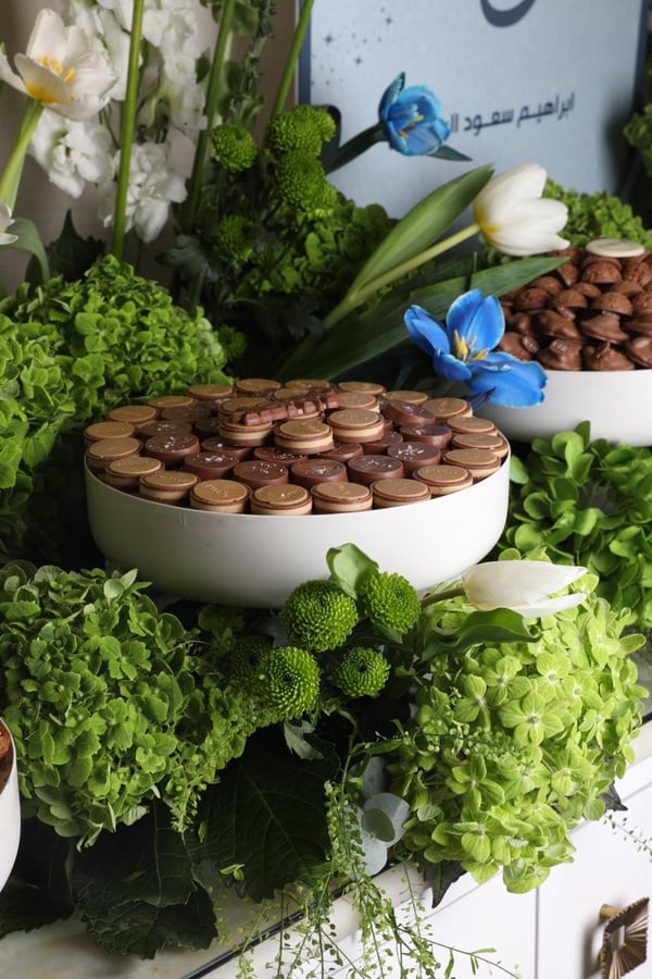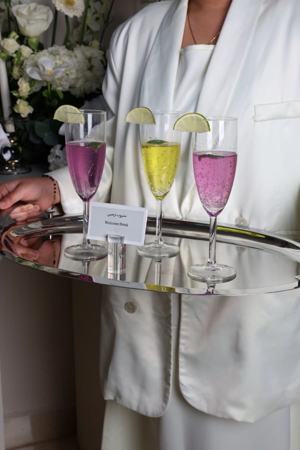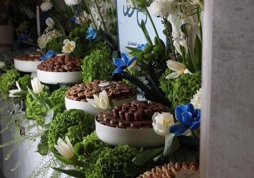 هذا العرض ل ١٠٠ شخص تنسيق الورد على اربع طاولات طاوله الحلو ١٢٠ سم طاوله الوسط طاولتين جوانب ( ما نجيب طاولات . يتم التنسيق على الطاولات الي عندك) مدخل الكتروني تقدري تحطي عليه فيديو او لوغو من تصميمك ومنسق بالورد والاكسسوارات ٤ بنات خدمه ٣ ماعون حلا ( كل ماعون كيلو ) ٢ ماعون مالح ( كل ماعون ٦ درازن / ٧٢ حبه ) نوعين شاي نوعين قهوه + ( قهوه عربيه ضيافه ) ٧ أنواع عصاير فرش ٤ مشروب ترحيبي ( موهيتو ) ٤ علب كلينكس ١٠٠ حبه ماي عليهم لوجو الشركه ( اذا حابه تحطي اللوجو الخاص فيكي بتدفعي ١٥ دينار وكل الماي والكلينكس يتغيرو ) سعره ٥٩٥ دينار